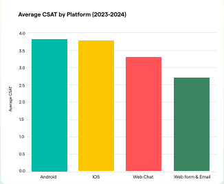 Support leaders feel this pressure every day. They watch queues spike at 3 a.m., see sentiment dip after major events, and deal with frustrated players who want answers “right now.” It’s a demanding reality, and the numbers reflect it: in-app support channels receive the highest CSAT across gaming (3.8 on average), showing players reward studios that respond in the moment.