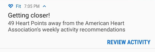 Fitness tracking apps are especially good at these types of notifications as well. They regularly inform their users about certain achievements such as the number of steps walked and motivate the users to complete new challenges. Here’s an example of a message sent by Google Fit app: