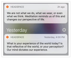 Another type of apps with philosophical messages are meditation apps. Here’s a couple of meditation reminders from Headspace: