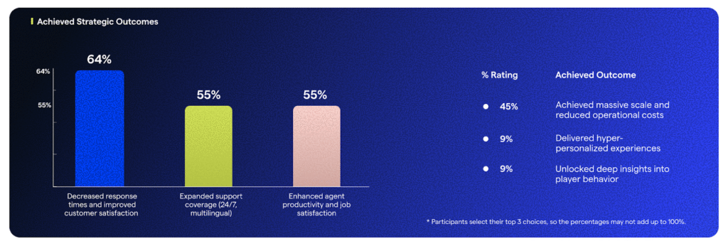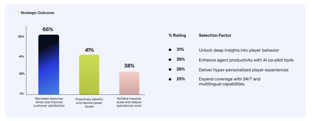 AI is rapidly eliminating routine customer service tasks, allowing teams to redirect their focus toward higher-value, strategic work. This transformation is now less about if and more about how fast the industry moves. As one Director of Product Management from our survey noted, “If we can deliver better support, faster, to players in larger volumes, this only makes the player experience better. And if we can do it at a better cost, it’s really a no-brainer.”
