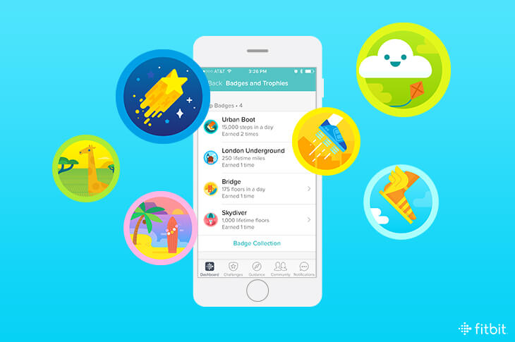 Fitbit is a wearable fitness tracker that is connected to an app with the following gamification features: