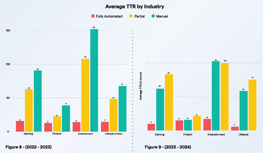According to Helpshift’s 2024 Digital Benchmark Report, players often had to wait for an agent “fluent in their language to come on shift,” delaying help for hours and frustrating users worldwide. Manual back-and-forth between agents and databases inflated resolution times to an average of 84 hours, compared with just 9 hours under full automation.