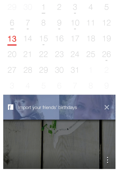 - Adding friends. If your product is based on user interaction, you can use in-apps to push the users to the desired action. Show them how easily they can interact with others. The Any.do Cal app suggests importing information about your Facebook friends to the calendar. Thus, it tries to get closer to users by creating a personal space in a product that is still unknown to them.